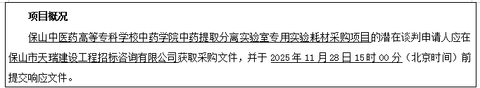 保山中医药高等专科学校中药学院中药提取分离实验室专用实验耗材采购项目竞争性谈判二次公告