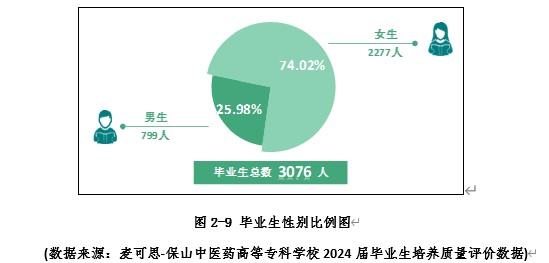 2024年,学校多措并举促就业,就业成效显著提升。2024届毕业生3076人,其中男生799人,女生2277人。
