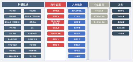 科研类网站群采用结构化数据,维护更方便,展示更规整,同时便于学校对数据的沉淀和利用。
