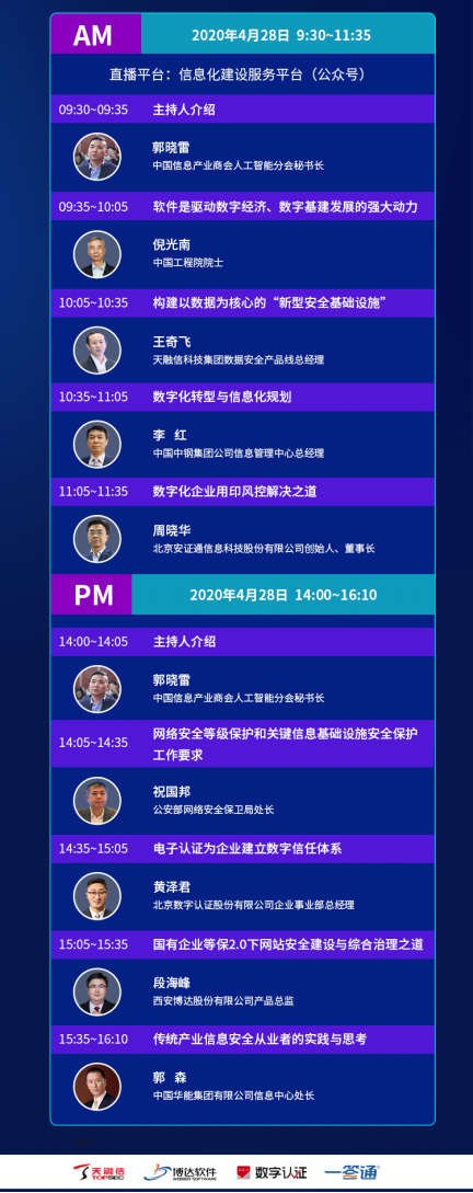 博达软件有幸受邀参加,产品总监段海峰将于15:05-15:35进行“国有企业等保2.0下网站安全建设与综合治理之道”相关分享,敬请期待。